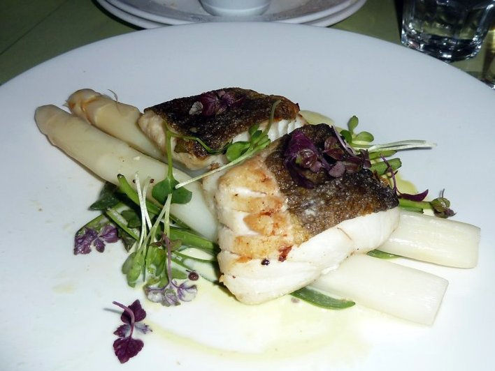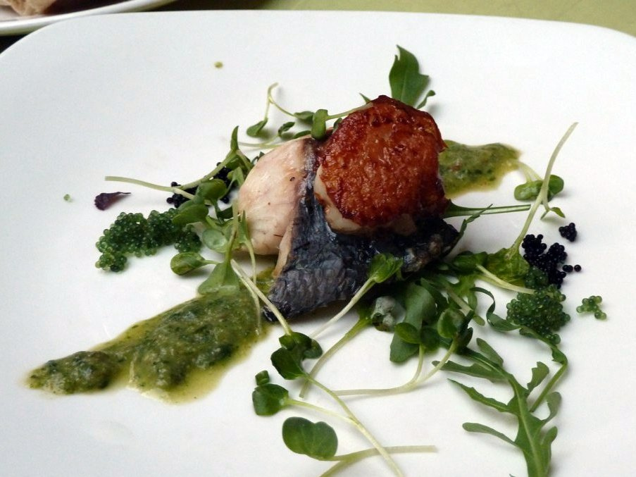 Kurz vor dem Servieren etwas Butter in einem kleinen Topf zergehen lassen, die Erbsen darin schwenken und mit Salz und Pfeffer würzen. Ein paar Blättchen frische Minze in dünne Streifen schneiden und mit einem Hauch Zitronenabrieb untermengen.