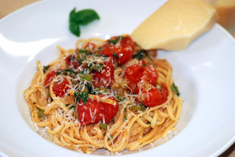 Dazu schmeckt Ruccolasalat (Balsamico-Olivenöl-Dressing) mit ein paar klein geschnittenen, getrockneten Tomaten und Pinienkernen.