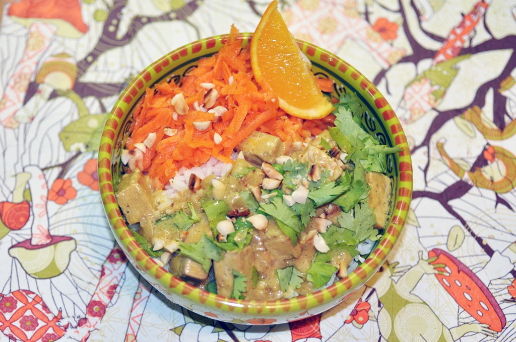Erdnuss-Kokos-Tofu und Karottensalat mit Orangendressing