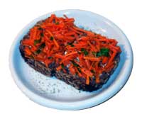 Karotten auf einer Scheibe leckerem, saftigem Vollkornbrot anrichten.